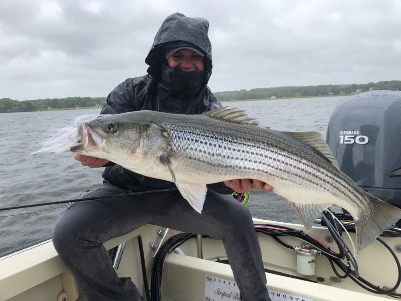 This weekend was tough weather wise, but if you were able to make it out you may know that there were fish to be caught! Despite the wind and rain, the CT River had some great bass fishing with some larger fish being caught on topwater. Customer Mike Querfeld was able to fool this big bass with a bait and switch and got her on the fly! Striper fishing in the Race has been great with tons of schoolie size fish being caught with larger fish moving in every day.
