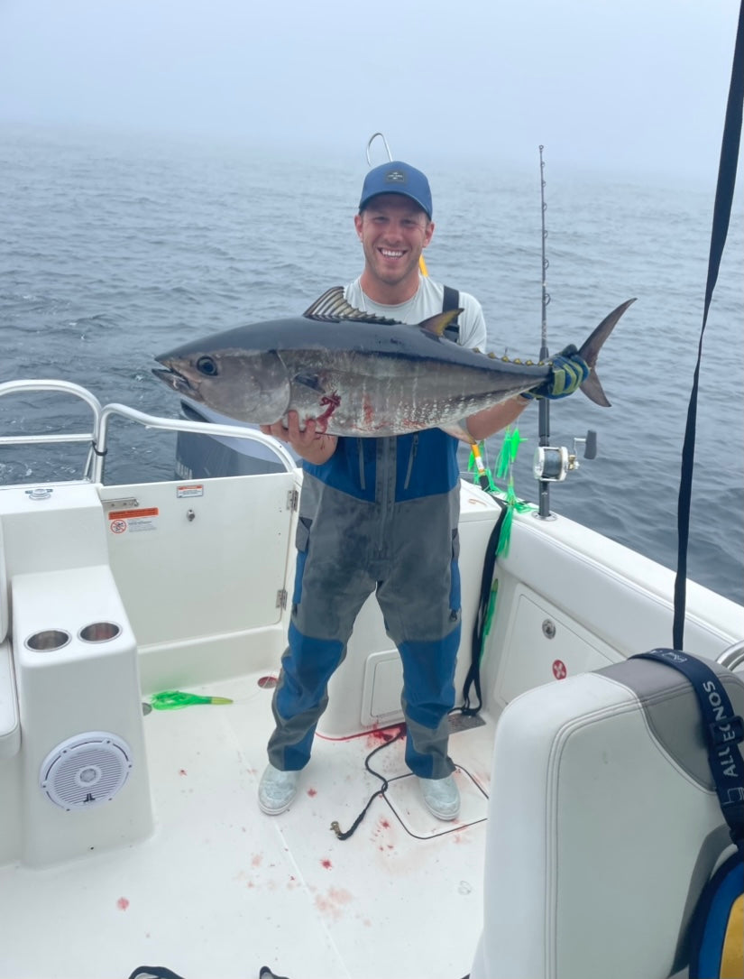 If you haven't heard yet, or if you just live under a rock, the tuna fishing this past week has been absolutely lights out. Inshore bluefin fishing was consistently good if you could find the fish. Pictured above is Captain Brian Moskey with one of many fish he caught on multiple trips last week. Many boats were able to catch and release plenty of fish during this epic bite.