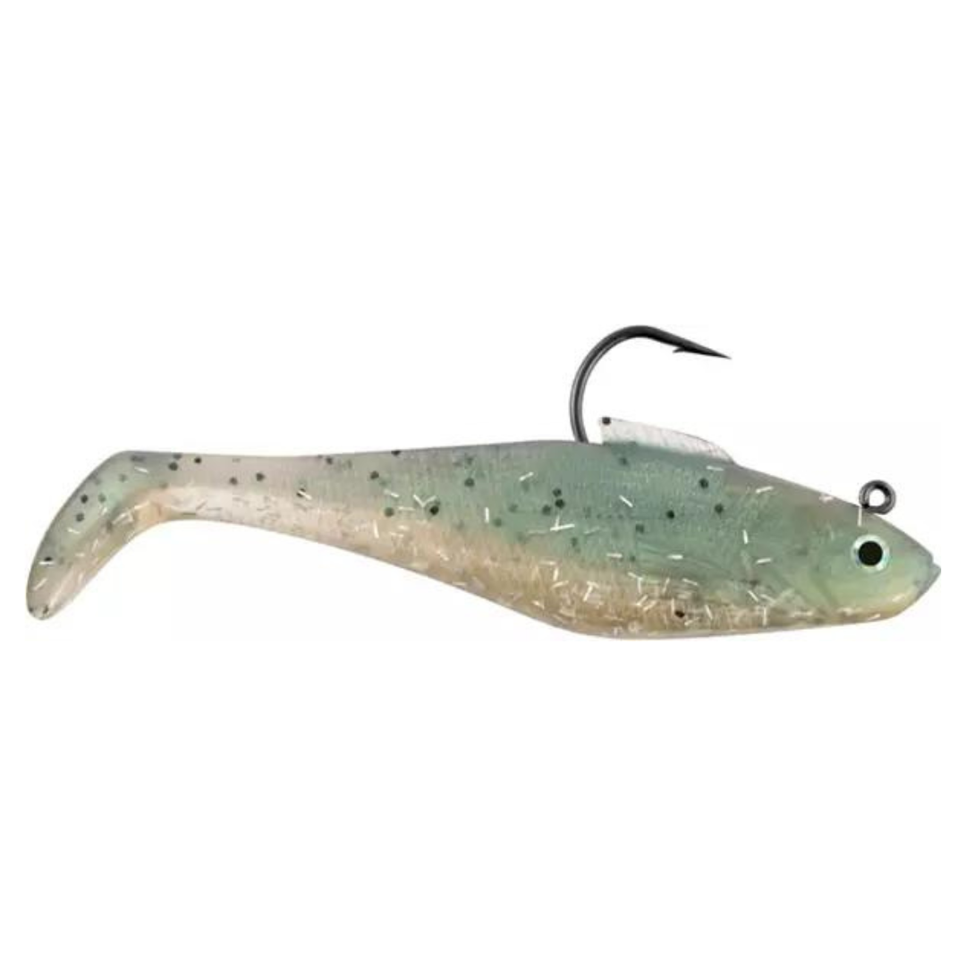 Designed to provoke quick and aggressive strikes, the Tsunami Holographic Swim Shad Soft Baits have a durable, soft-vinyl body with a realistic holographic foil core and lifelike 3D eyes. The consistent swimming action and high-quality Mustad hooks make these baits a favorite among anglers and predators alike. And don't worry about tough fish - these baits are built to withstand them!