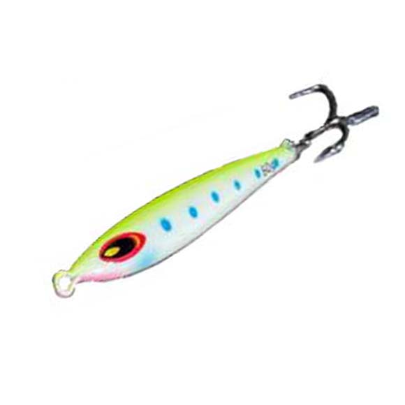 Chatter has brought their popular vertical jig to the market featuring a VMC 9626 4X treble to target bottom species like Sea Bass. This isn't a light duty jig though, the 4X works well on Sea Bass but will handle Striped Bass, Cod Fish and double as light duty for Tuna. Resembling the profile of a Sand eel the Stinger jig mimics one of New England's primary bait sources. Available from 60gram to 150gram in 5 Colors