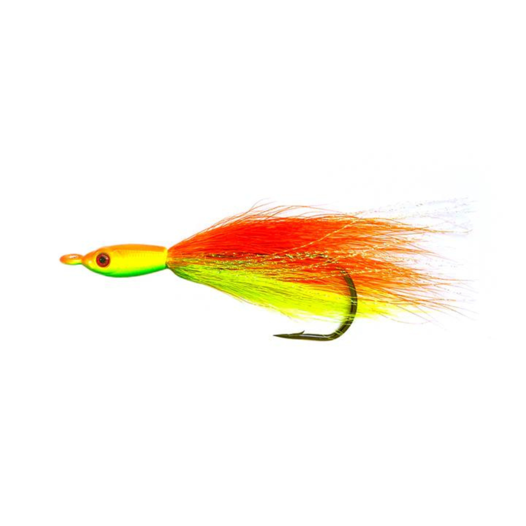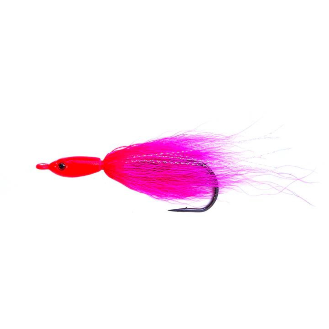 The Jigging World Fluke Candy BuckTail Teaser is a highly sought after foam head lightweight teaser. It boasts a custom ultra sharp, long shank hook with a grip pin barb to securely hold your soft plastics in place. This bucktail version exclusively uses 100% natural bucktail. The straight eye design at the front of the head ensures optimal presentation when attached to a dropper loop. Offered in 8 of the most popular colors on the market, choose your go-to colors and assemble your hi-lo or bucktail/teaser rigs for your next fishing adventure with the included 2 pieces per pack.
