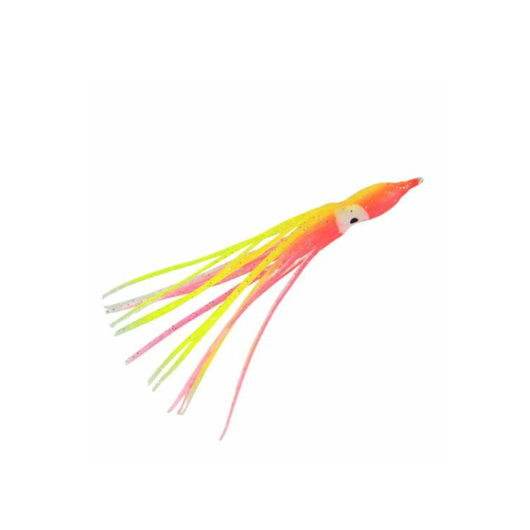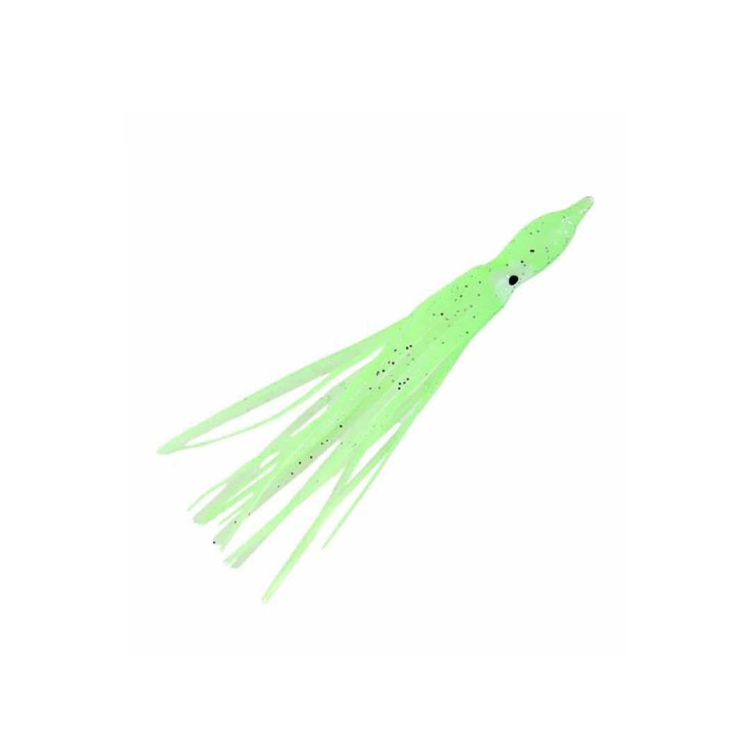 Offering squid body skirt teasers in 4", 5" & 6" lengths, Jigging World ensures durability and quality with high-grade soft plastic. With 6 vibrant colors to choose from, these expertly crafted squid skirts can be used as eye-catching teasers on various rigs or for creating daisy chains. And don't forget the glowing big eyes in all color styles!
