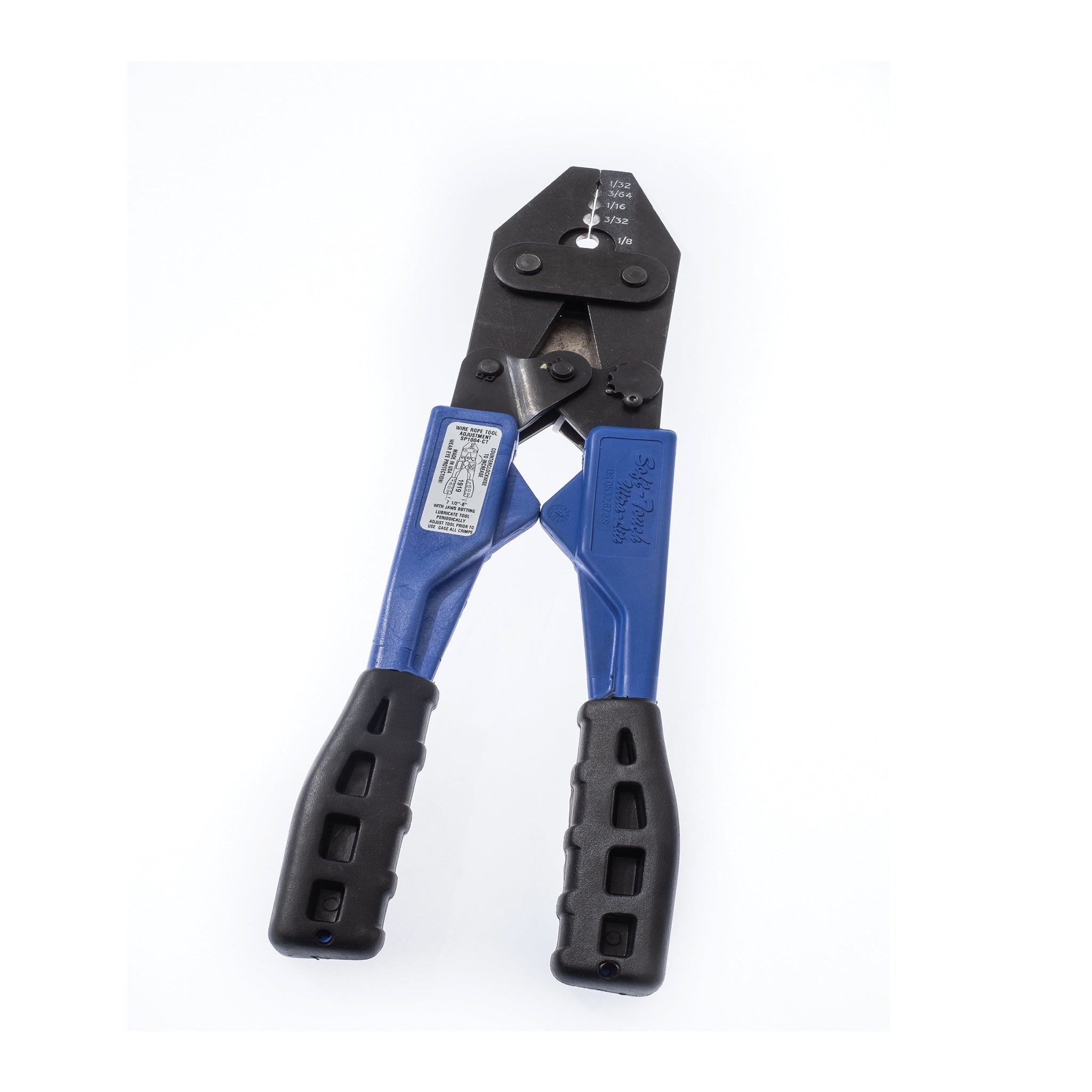 The HD450 Crimp tool works on Momoi, Jinkai, and any other aluminum or copper sleeves. Heavy duty composite handles one rust and make the tools much lighter without sacrificing power. 14" in length and will crimp 1.3mm to 4.2mm crimps. 150lb mono - 600lb mono approx.