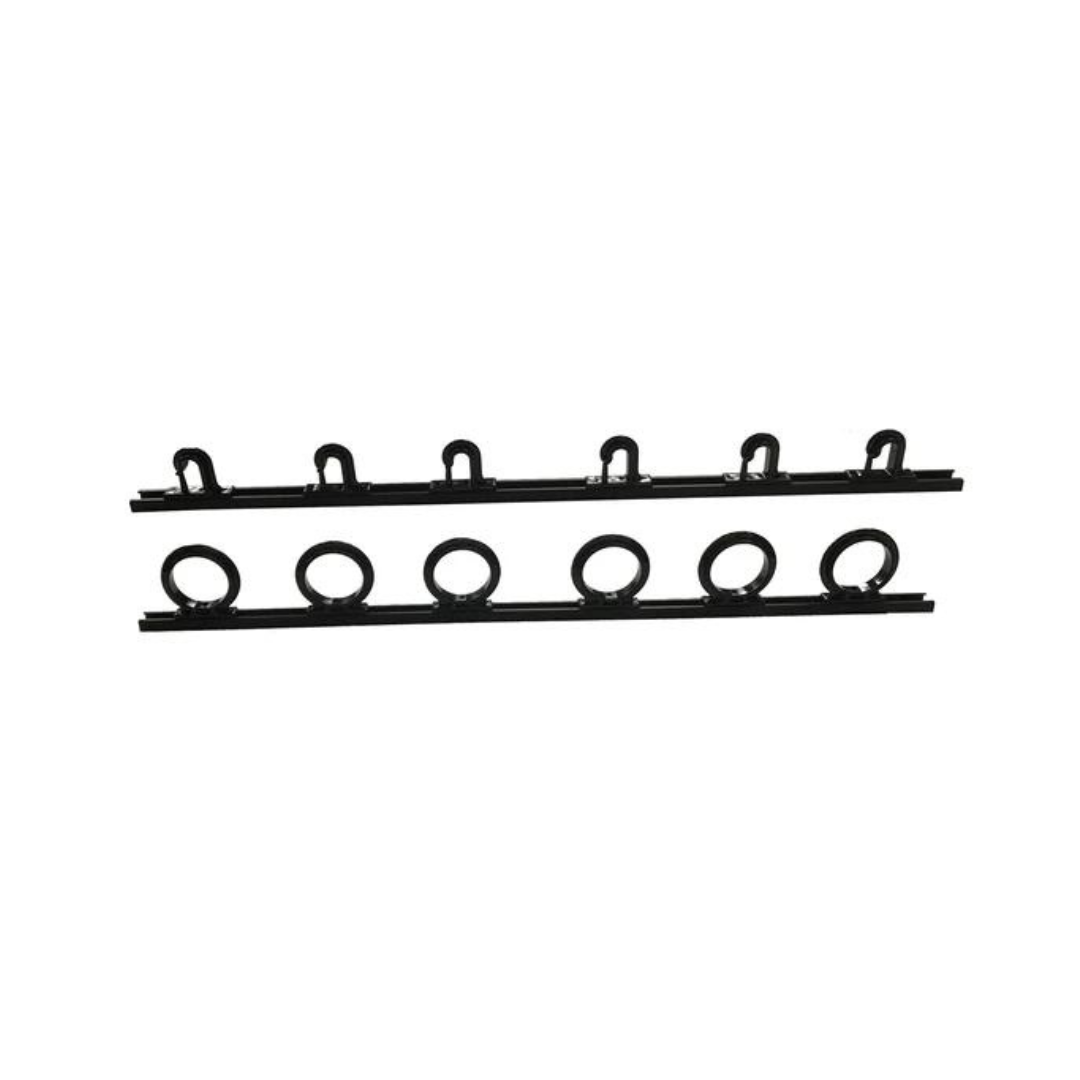 Looking for an easy and adjustable fishing rod storage solution? Look no further than Du-Bro Trac-A-Rod! Say goodbye to tangled and broken rods stacked in a corner. Our system offers 2 or 4 foot models, each with fully adjustable features and the ability to hold 6 or 12 rods/reels respectively. Keep your reels on your rods with no need to remove them, and enjoy compatibility with handles up to 1-3/4" in diameter. The tip holder can accommodate rods with a tip width of 0.435", and the entire system is rust resistant for use in saltwater areas. With secure rod tip holders, you can mount the Trac-A-Rod horizontally or vertically, on the ceiling or wall, and enjoy the added stability of multiple screw holes, perfect for use on boats or in rough seas. It's also a great fit for boats, pickup trucks, vans, and RVs. Choose from various lengths and versions, all made with