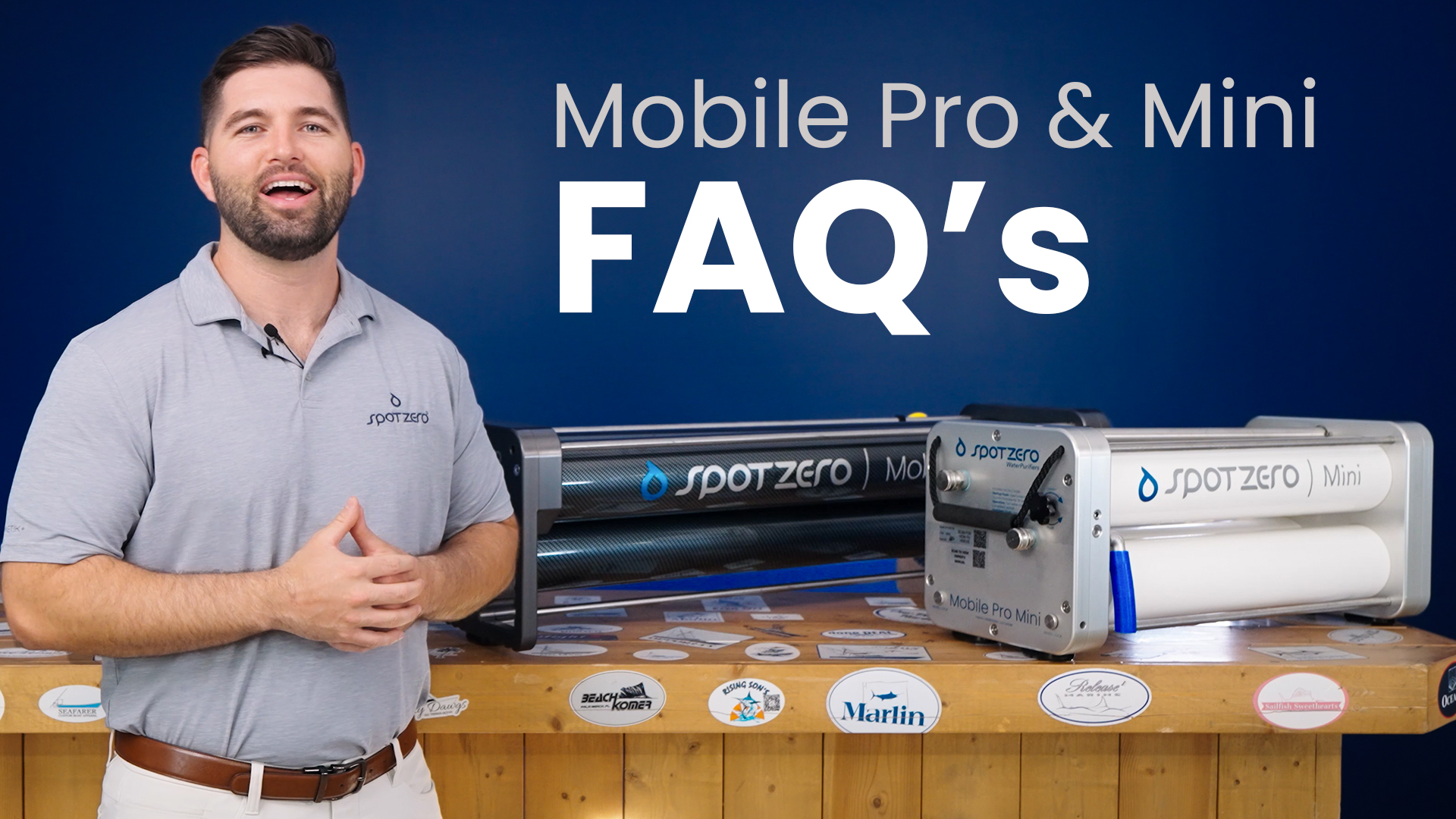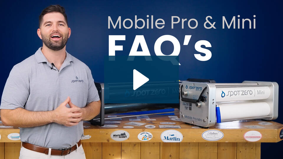 The SPOT ZERO Mobile Pro Mini is SPOT ZERO's smallest mobile unit. It is perfect for boats up to 45' in length. At 28.5" Long it is compact enough for tight docks and portable enough to bring to and from the boat. SPOT ZERO uses only 6061-T6 High grade aluminum alloy for construction. Plumbing is internal to avoid corrosion issues. Proudly Made in the USA! Comes with 1 Year Warranty.