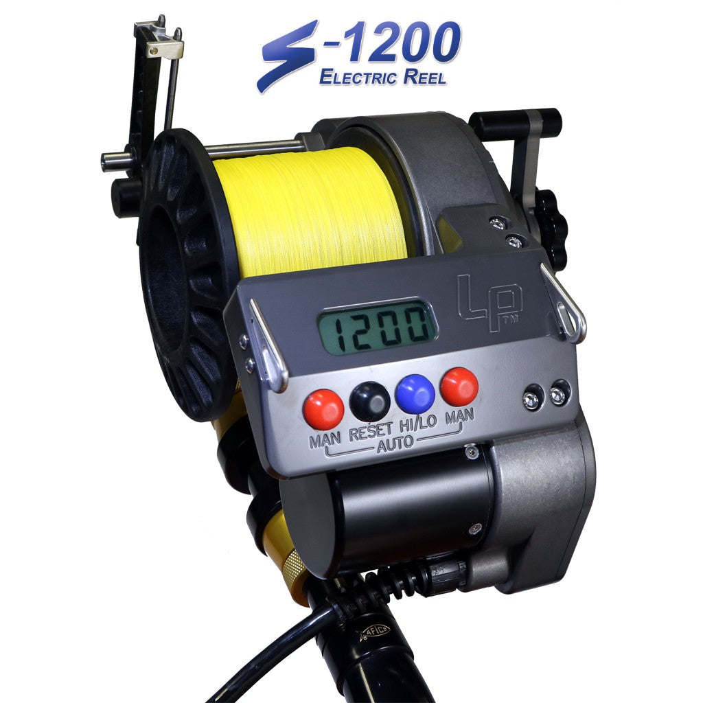 The LP S-1200 is a rugged high capacity electric fishing reel that