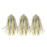 Enhance your rigs with Jigging World Hybrid Teaser Skirts. These versatile teasers easily slide onto dropper loops, and the combination of mylar flash and silicone skirts make for irresistible bait. Each pack contains 3 enticing teasers.