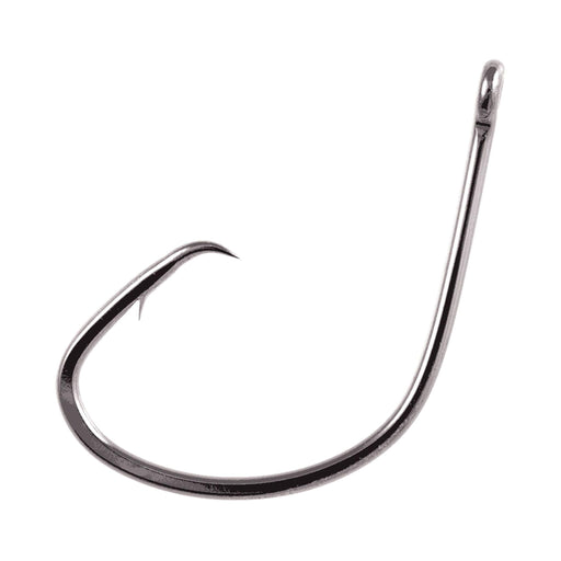 OwnerBlack Chrome circle hook, great for live bait or chunking. This hook has a “hangnail” point so fish get hooked on their jaw and not down in their g...