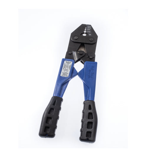 The HD450 Crimp tool works on Momoi, Jinkai, and any other aluminum or copper sleeves. Heavy duty composite handles one rust and make the tools much lighter without sacrificing power. 14" in length and will crimp 1.3mm to 4.2mm crimps. 150lb mono - 600lb mono approx.