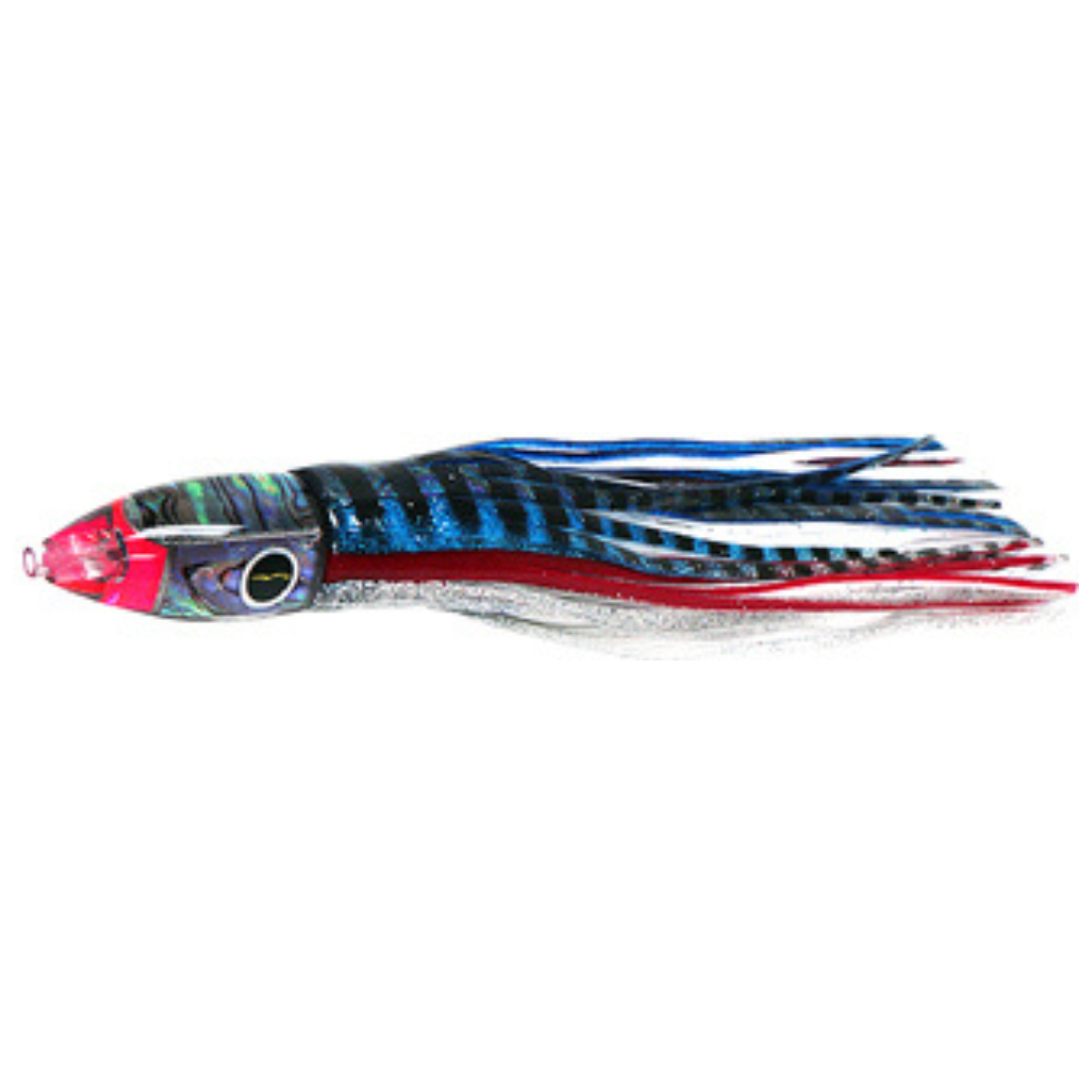 Another one of my offshore sure thing no brainier. This deep runner with a smooth torpedo action tracks best from the rigger position. If you already like the Wide Range lure then try my 1656 Flat Nose, it’s even better than brand X, I guarantee it. I’ll even send you a list of Captains who won’t go fishing with out it. Trolled at any speed in all conditions, the 1656 Flat Nose performs best with a 10/0 hook set.