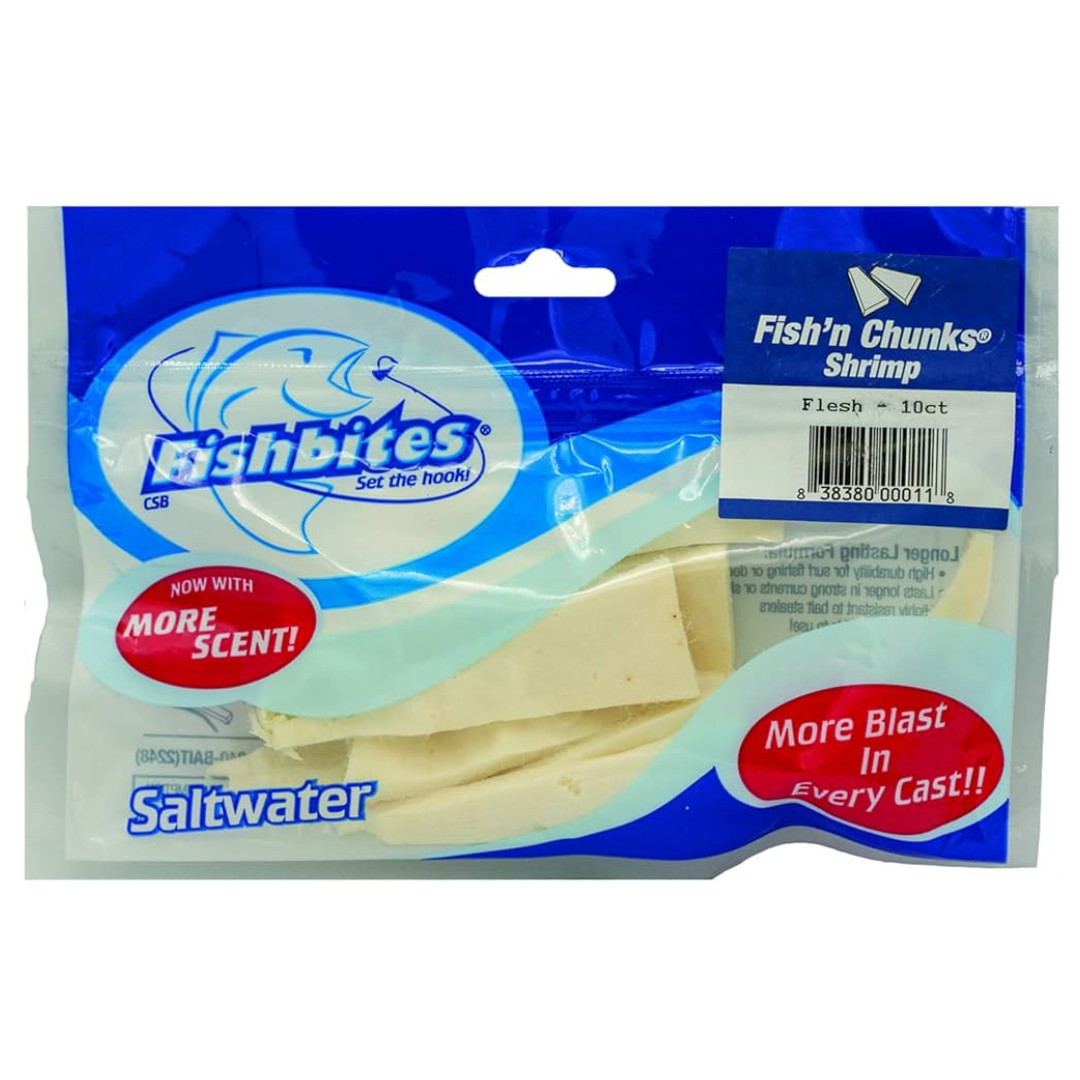 Fish’n Chunks have the same benefits as Fish’n Strips but their larger size is geared for bigger saltwater fish. They’re great for trolling and creating a chum line when using natural bait. Fish’n Chunks belong in the tackle box of every offshore angler.