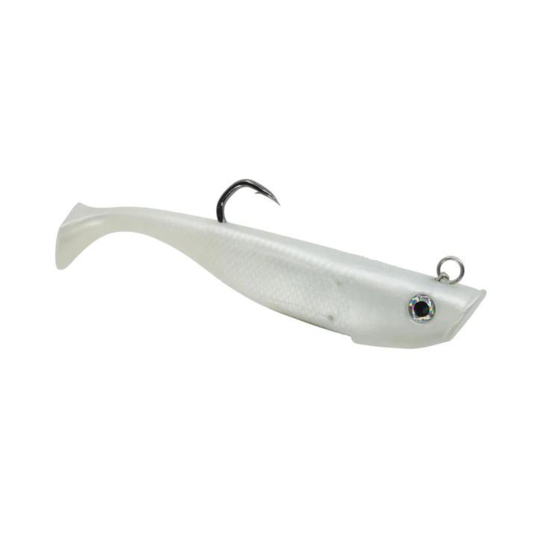We spared no expense in designing this gigantic swimbait. The Harness Pro Tail is carefully balanced to ensure a natural drop and retrieve and features our custom 500lb test stainless steel harness that connects the 4X VMC Barbarian Tuna Live Bait Hook to the built-in ball bearing swivel in the nose.