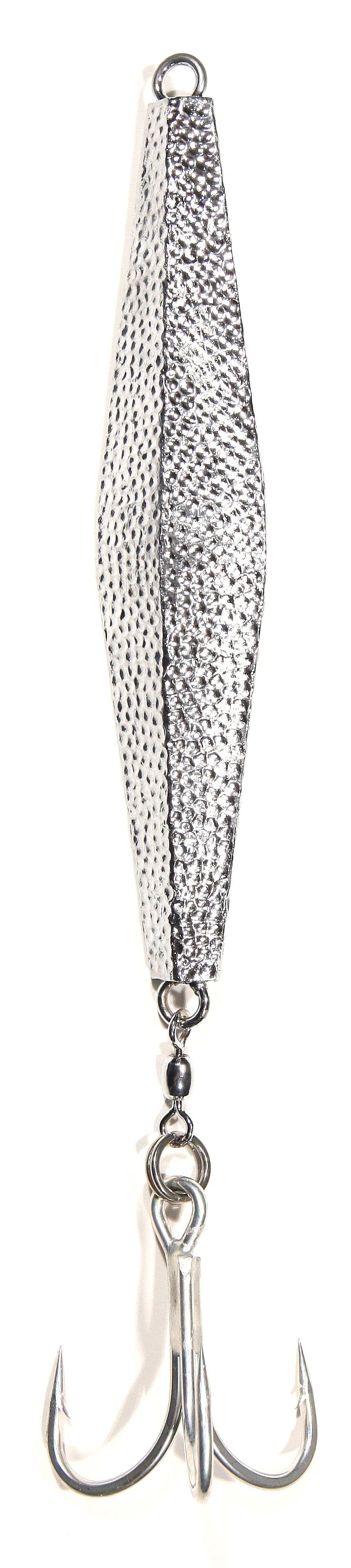 J&B Tackle Custom Hammered Diamond jigs are rigged with Tuna ready hardware. Great for when the troll bite slows down or if there are schools of bait where the fish are and you need to drop down to hook up.