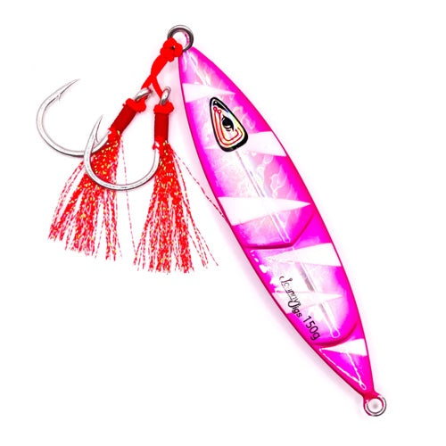 The ''Ridged" slow pitch jig is a proven mold. If you want a little glow on the jig then this is the Ridged for you. The design and shape create an erratic action under water mimicking a wounded bait fish. The double notched or ridged mold creates underwater disturbance and the jig will have an inconsistent fall pattern. Higher on the flutter scale the Ridged a choice jig for bottom species in moderate to light conditions.