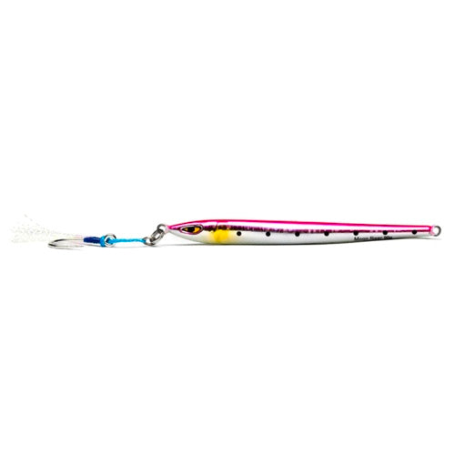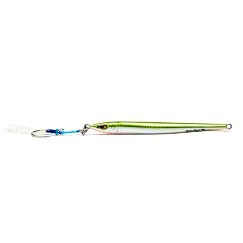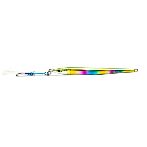 The Moonriser jig is slim profile jig with weight concentration near its head. It is a highly versatile jig that attracts different species. Due to its streamline design, it descends quickly and is great for fishing spots that hold structures, such as wrecks. It cuts through water with minimal resistance and allows the angler to jig in deeper water. Slower and longer strokes are ideal for working the Moonriser and this less intense technique allows anglers to continuously jig for a longer duration, increasing the chance of a strike.
