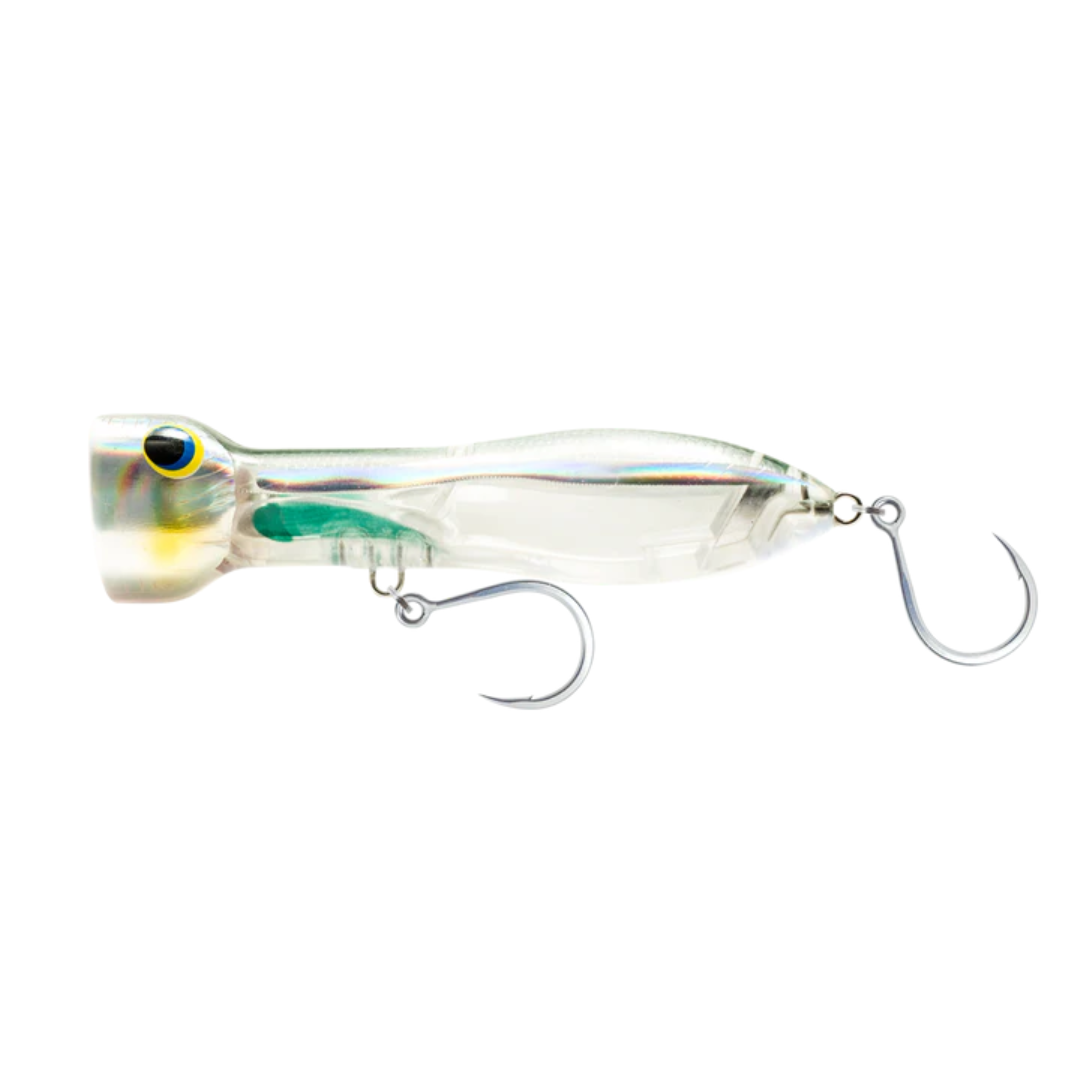 The CHUG NORRIS 4-3/4” popper is super easy to pop, it hangs in the water and will not ‘pull out’ when popped. This popper is all about being easy to use, and it does not require much effort to get a big pop due to the unique body shape and hydrodynamic design. It can also be worked with subtle small pops and twitched across the surface. Whatever application, you will find the 4-3/4” Chug Norris popper one of the easiest to use and most effective poppers available. It is ideal for everything from Tuna to Stripers, Redfish and Cobia.