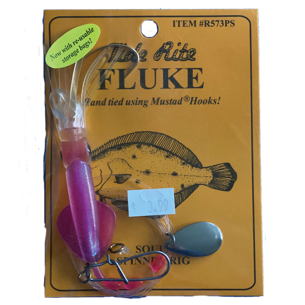 Big Bait equals Big Fish. The R576 Tide Rite Fluke rig is "Tied Right" to catch Doormat Fluke. Quality mono, hand tied rig with spinner blade and 6" Squid bodied teaser. Three way swivel with sinker snap and lazer sharp hook complete the rig. Available in four colors Chartreuse, White, Pink, and Glow Silver